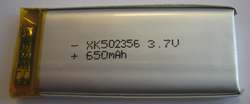 Rechargeable battery with built-in protection board 3.7V 650mA/h, 1.5C, 59.5x37.5x3mm