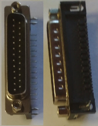 SMA(m) angle connector, with enlarged threaded portion for mounting on a printed circuit board footprint 7x7mm.