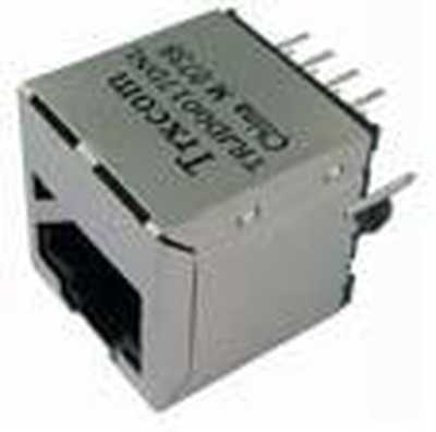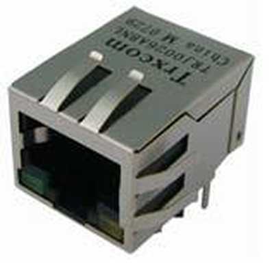 RJ-45 connector with built-in transformers 1CT: 1 - 1CT: 1 SMT 1X1 Tab up 10 / 100BASE-T. Analog to J0C-0003