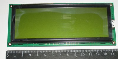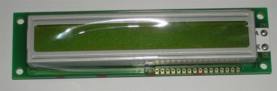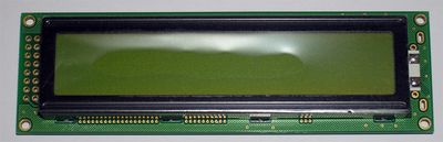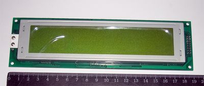 LCD dimensions 4 lines of 40 characters, without cyryllic characters, dimensions of window 154x16,5mm, module 182x33,5mm, yellow-green glass, 6 hours, backlight yellow-green 5В, -20Ц+60С
