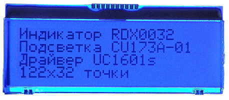 Graphic COG LCD; 128x32 pixels; driver - UC1601s; size 82.0х33.7 mm; visible area 76.0х23.0; dots size 0,53x 0,56 mm; recommended backlight - RTB10173-W, CU173A-01; dimensions compatible with TIC32