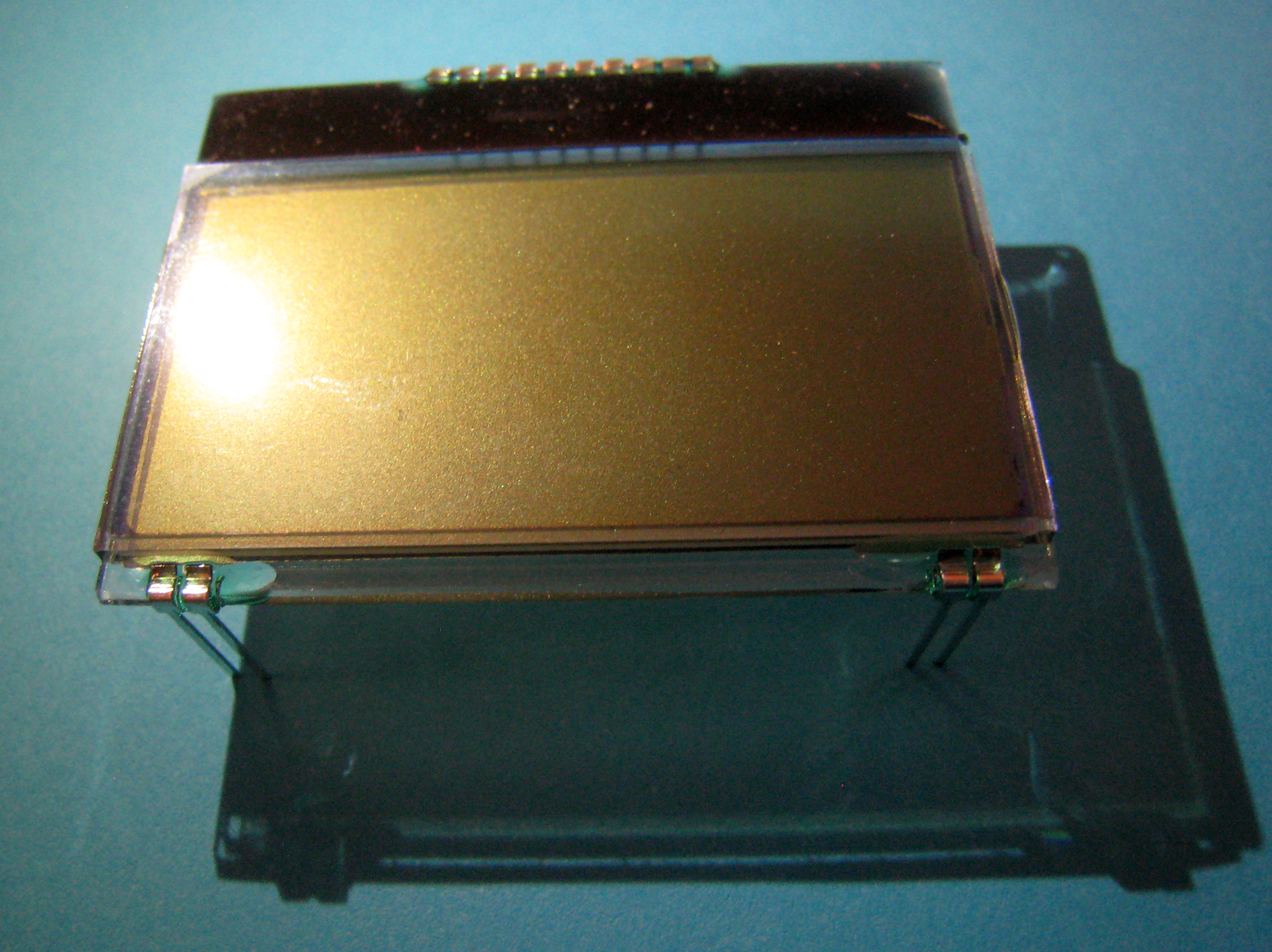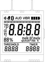 Short description: specialized display for radiation counters; 4 big eights at the top, 4 + 4 small eights at the bottom, special symbols; driver pcf8576; dimensions 49.0х53.0; analog - no; backlight - built-in