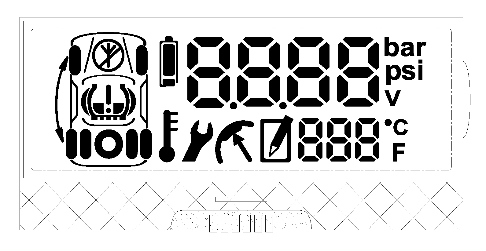 Short description: specialized automobile seven-segment display. driver ML1001. Special characters, 4 eights at the top, 3 eights below. dimensions 59.5х27.8