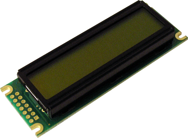 Short description: LCD analog AC162A, dimensions 85.0х30.0х13.2, 2 lines of 16 characters, character size 5.55х2.95, STN yellow-green, reflection-lumen 12 hours, yellow-green LED 5В backlight, extended temperature range