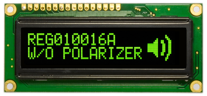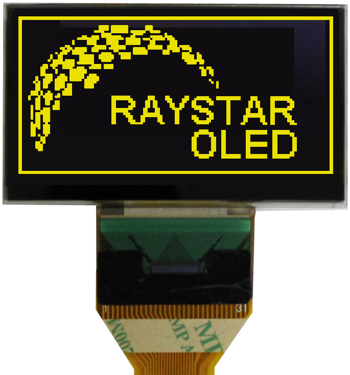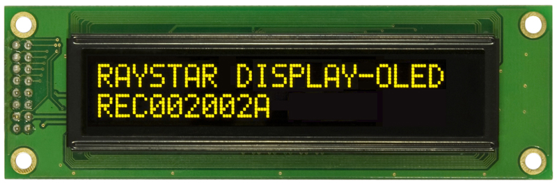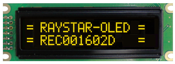 symbolic OLED display, 2 lines of 16 characters, dimensions 122.0 x 44.0, yellow glow, character size 4,74х8,90