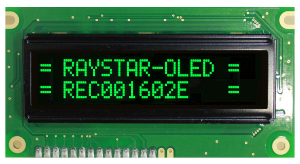 symbolic OLED display, 2 lines of 16 characters, dimensions 85 x 30, yellow glow, character size 2,95х5,55
