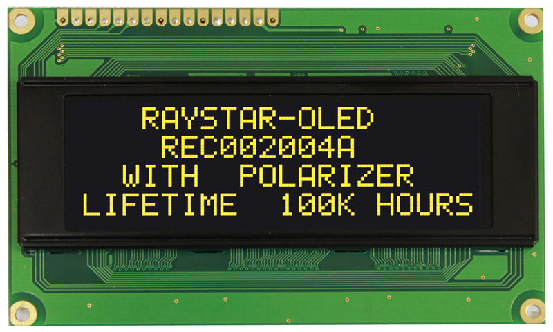 symbolic OLED display, 2 lines of 20 characters, dimensions 116.0х37.0, yellow glow, character size 3,2х5,55