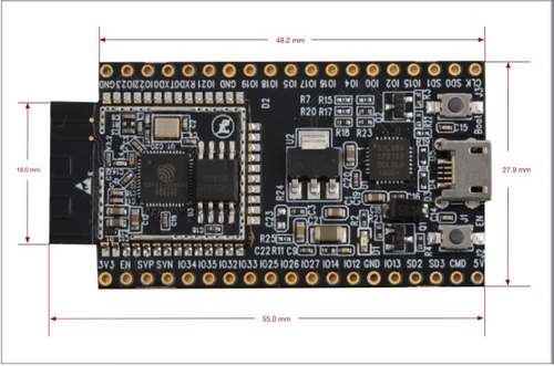 WiFi module on ESP32: IEEE802.00b/g/n, Client/AP,P2P, WEP/WPA2, TCP/IP, UART,GPIO, Bluetooth v4.2 BR/EDR+BLE, OCPU Xtensa Dual-Core LX6 240MHz, 520K SRAM, 448K ROM